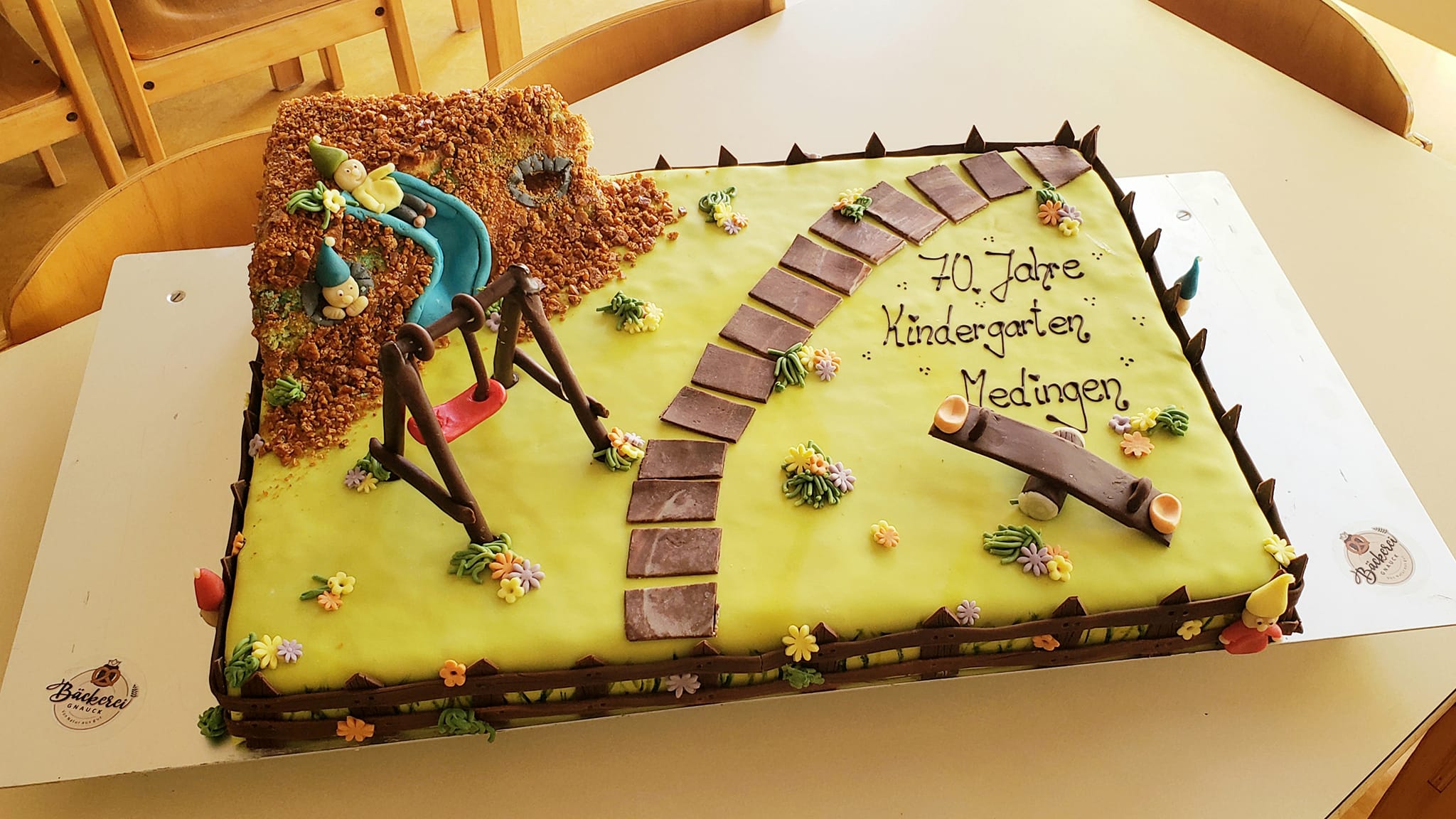 25. März 2022 - Zur großen Jubiläumfeier gab es natürlich nicht nur eine Menge zu Essen und zu Trinken, sondern auch viele Geschenke. Der Förderverein überreichte ein hölzernes Voltigierpferd. Natürlich durften der Sattel und das Zaumzeug genauso wenig fehlen wie das Putzzeug. Wir wünschen allen Kindern viel Freude damit. Und fürs Ausruhen nach getaner Arbeit hatte der Ortschaftsrat die passende Idee. Jede Kindergruppe erhielt einen Picknicktisch mit Bänken für den neuen Spielplatz. | 1. März 2022 - Bald ist es so weit! Unsere KiTa wird 70.! Dieses Jubiläum feiert das ganze Zwergenland mit einer Festwoche vom 25. März bis zum 1. April 2022. Seid alle mit dabei. Erfahrt viel Interessantes über siebzig Jahre Kindergarten. Einige Überraschungen warten auf Euch! |