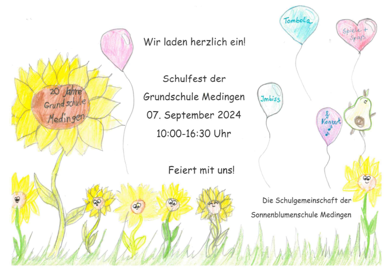 Der Förderverein der Grundschule Medingen wurde 2009 aus einer Elterninitiative heraus gegründet und unterstützt seitdem sehr erfolgreich die „Sonnenblumenschule“ und inzwischen auch die Kita Zwergenland.