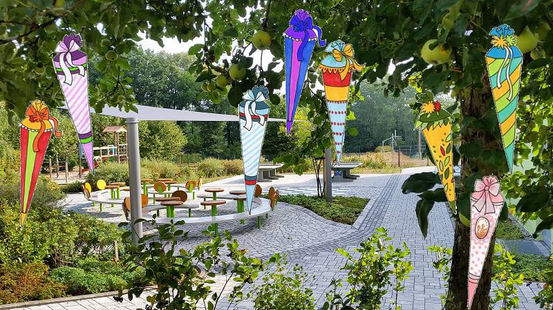 6. Juli 2023 - Die Klasse 4 des Jahrganges 2019/2023 pflanzte im Rahmen ihrer Abschlussfeier zum Abschied einen Baum. Wir wünschen allen Schülerinnen und Schülern auf ihrem weiteren Bildungsweg alles Gute! | 23. Juni 2023 - Zum Sommerfest in der KiTa Zwergenland hat der Förderverein "Märchenhaften Besuch" eingeladen. Wir wünschen Groß und Klein viel Freunde. |